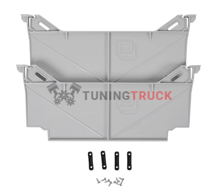 Комплект из 2-х перегородок серого цвета для ящиков. Подходит ко всем системам DECKED для полноразмерных пикапов и фургонов. НЕ подходит для узких ящиков на грузовиках среднего размера.
