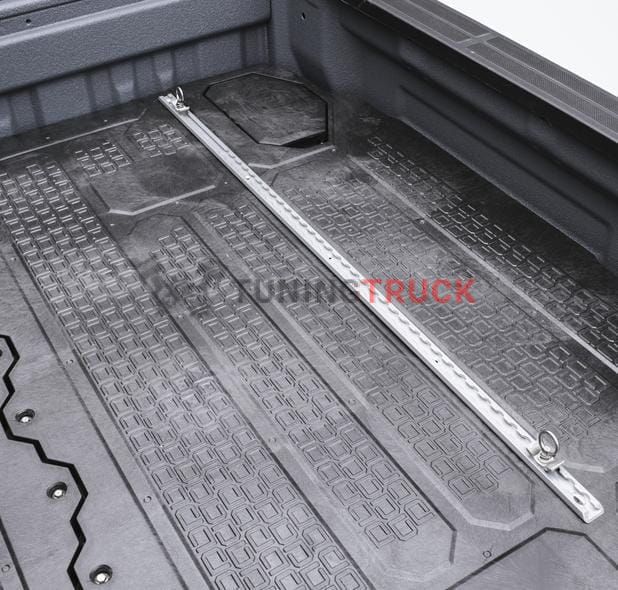 Сами направляющие выполнены из алюминиевого сплава 6061-T6 с порошковым покрытием серебристого цвета. Изготавливаются по индивидуальному заказу для совмещения со стальными трубами в подрамнике вашей деки DECKED, что позволяет устанавливать дополнительные точки крепления вверху. Направляющая может быть ориентирована в сторону кабины или задней двери кузова вашего автомобиля.