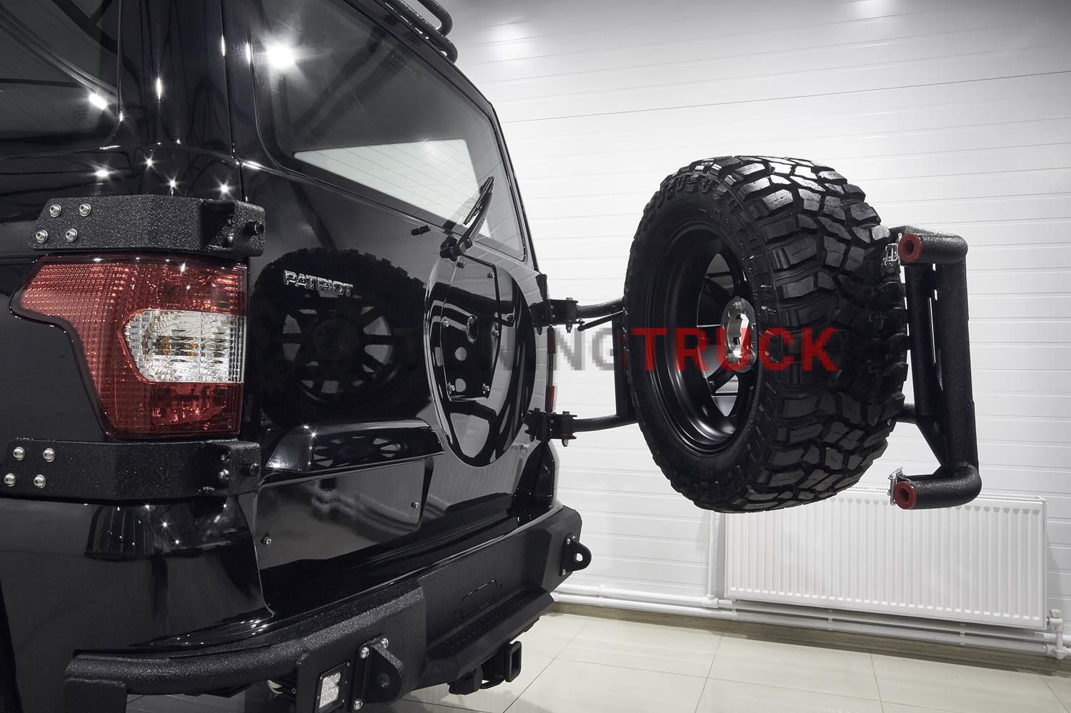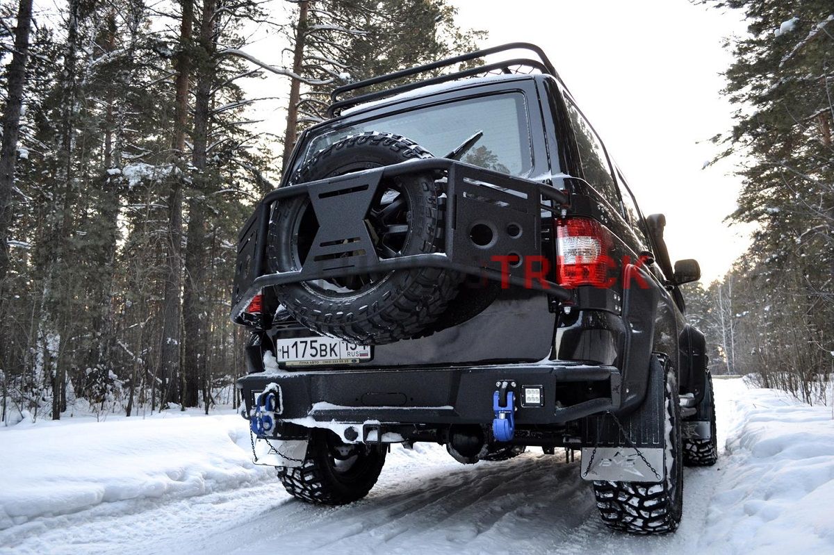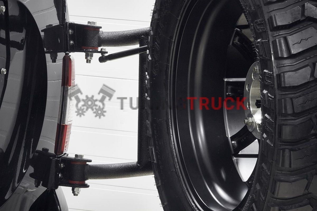 Калитка для надежного крепления запасного колеса. В штатном гнезде под запаску практически невозможно установить большое колесо с грязевой резиной. Это является причиной, по которой фанаты offroad устанавливают на свои автомобили калитки под запасное колесо. Материал - прочная сталь с полимерным покрытием. Калитка сконструирована таким образом, чтобы обеспечивать максимальную жесткость.