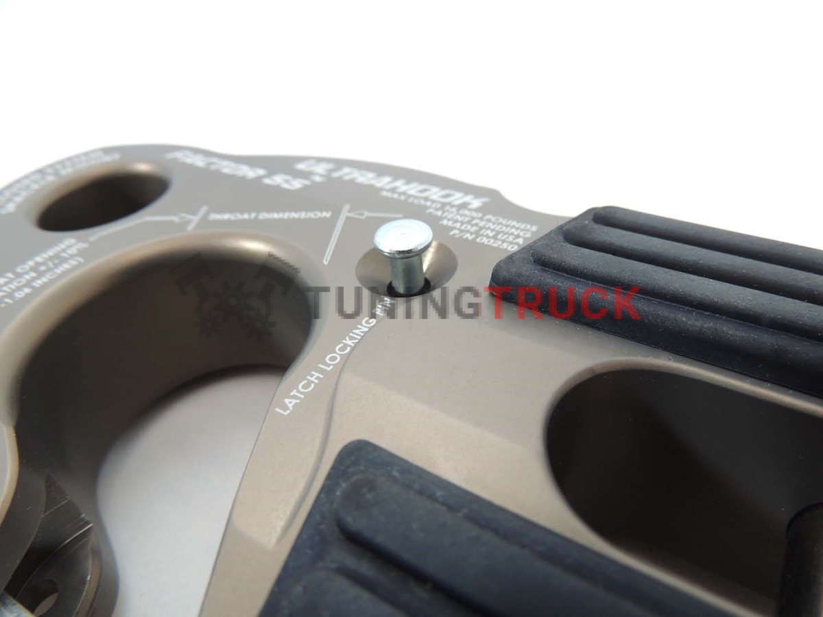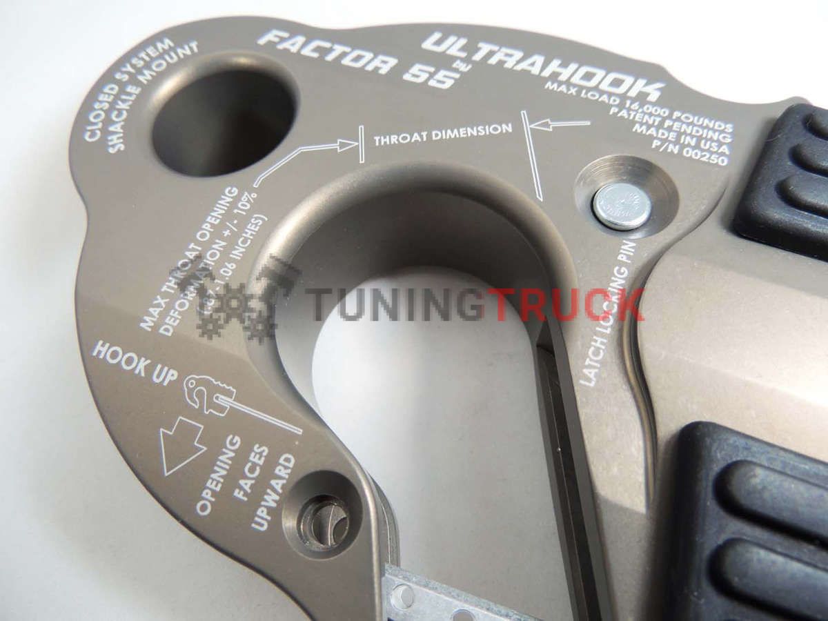 Оснащен закрытой системой крепежного отверстия, встроенного в корпус крюка, карманом для отвода предохранительной защелки, встроенным вспомогательным фиксатором вторичной предохранительной защелки, фиксирующим штифтом, который хранится в корпусе UltraHook, и который можно извлечь и вставить в кончик крючка, фиксируя защелку.
