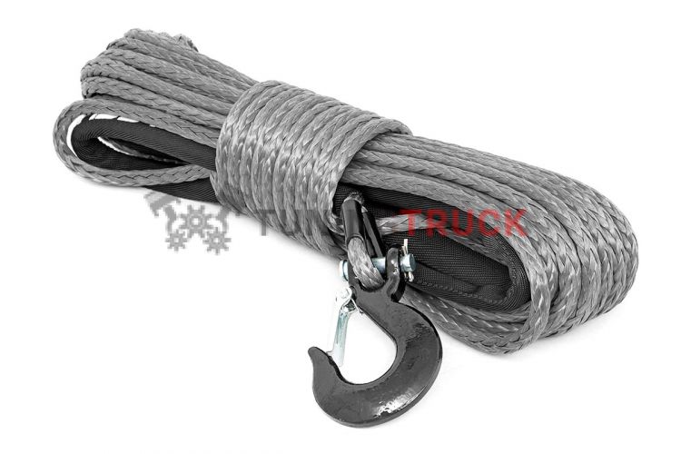 Сверхпрочный запасной синтетический трос для лебедки Rough Country. Синтетические тросы имеют большее соотношение прочности к весу, чем стальные, что делает их более прочными и надежными во время проведения спасательных работ.