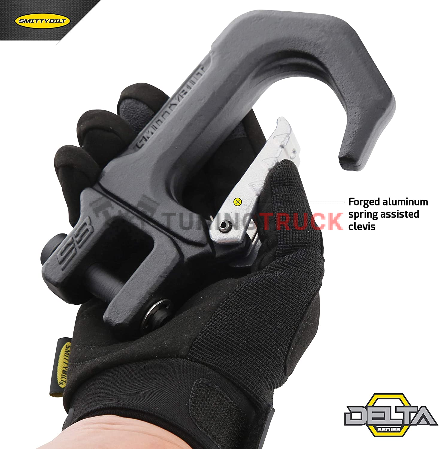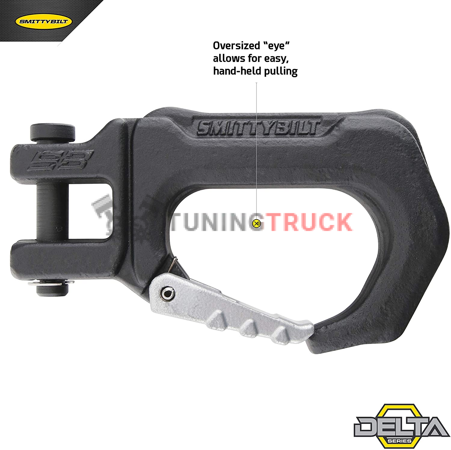 Корпус крюка имеет специальные выемки для пальцев, обеспечивающих удобный упор при открытии его горловины.