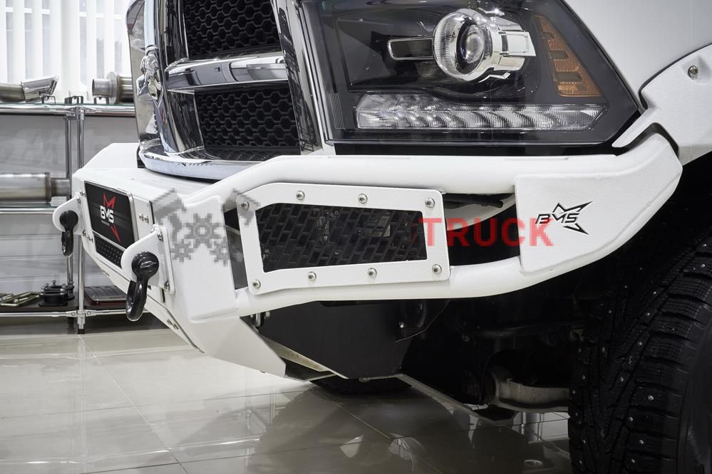 Передний силовой бампер для Додж Рам выполнен в лучших традициях американской школы внедорожного тюнинга. Каркас выполнен из стальной оцинкованной трубы с покрытием Line-X . Бампер делает экстерьер автомобиля более агрессивным и защищенным. Такое решение делает бампер более легким, чем аналоги из листовой стали.