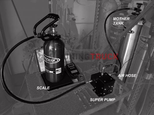 Набор, включающий CO2 насосную станцию со шкалой и газовым наполнителем под высоким давлением.