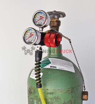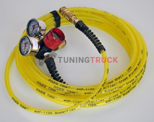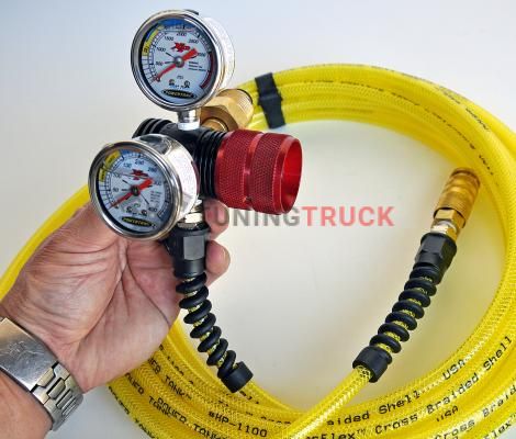 Поставляется с узлом CO2-гайки/ниппеля в сборке и также включает популярный набор для подкачки давления и стальной гаечный ключ. Все, что нужно, это баллон азота. Также в набор входит пневматический воздушный гибкий шланг высокого давления длиной 9 м и герметично закреплен на регуляторе. Давление на выходе регулируется от 0 до 400 PSI.