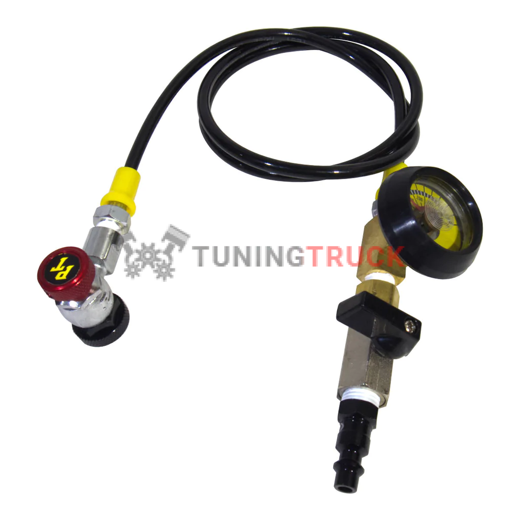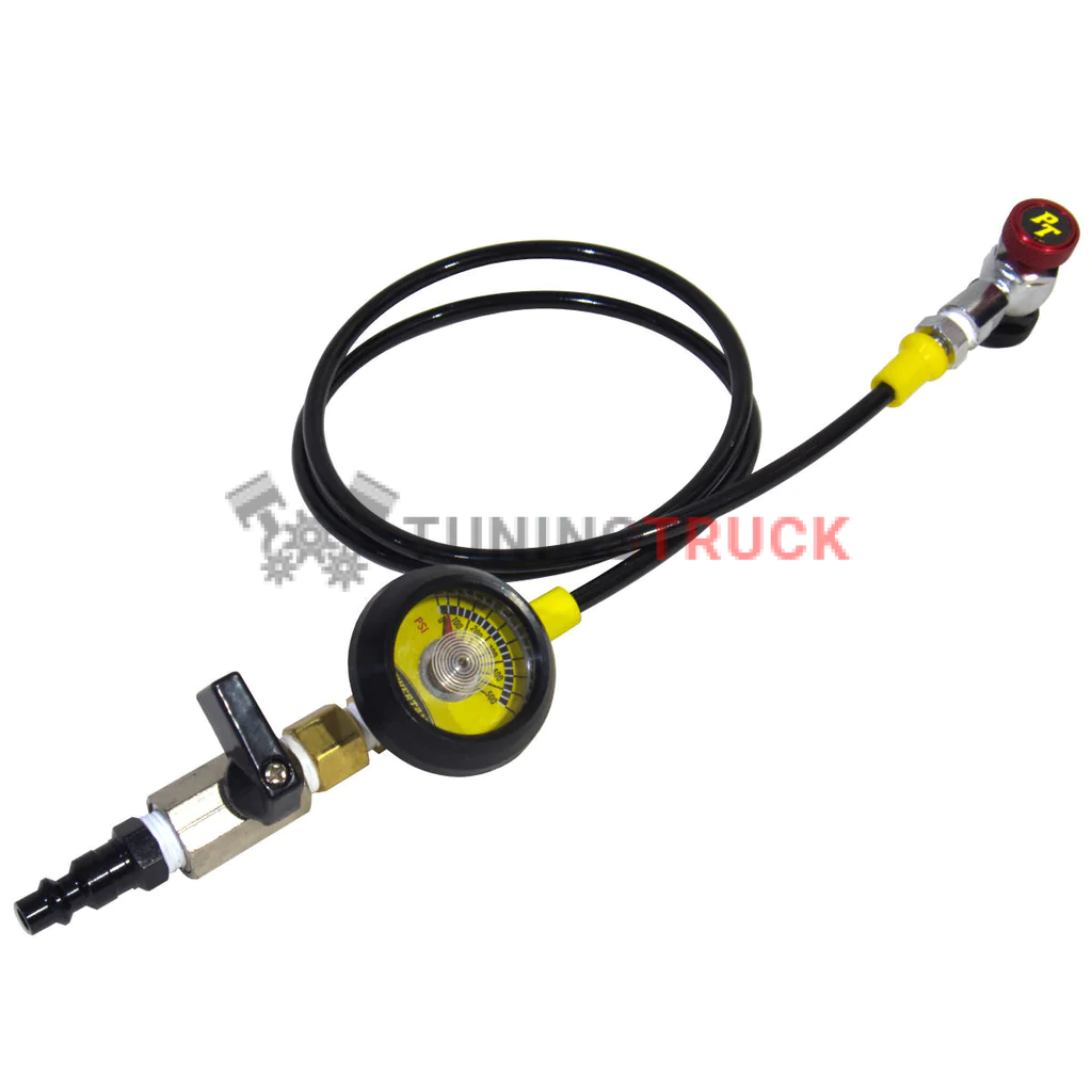 Используйте любой регулируемый источник N2, например, наш комплект регулятора азота. Шариковый воздушный патрон и манометр 500 фунтов на квадратный дюйм обеспечивают контроль во время перезарядки амортизаторов. Совет для профессионалов: установите желаемое давление удара на регуляторе для равномерного удара на каждом повороте.