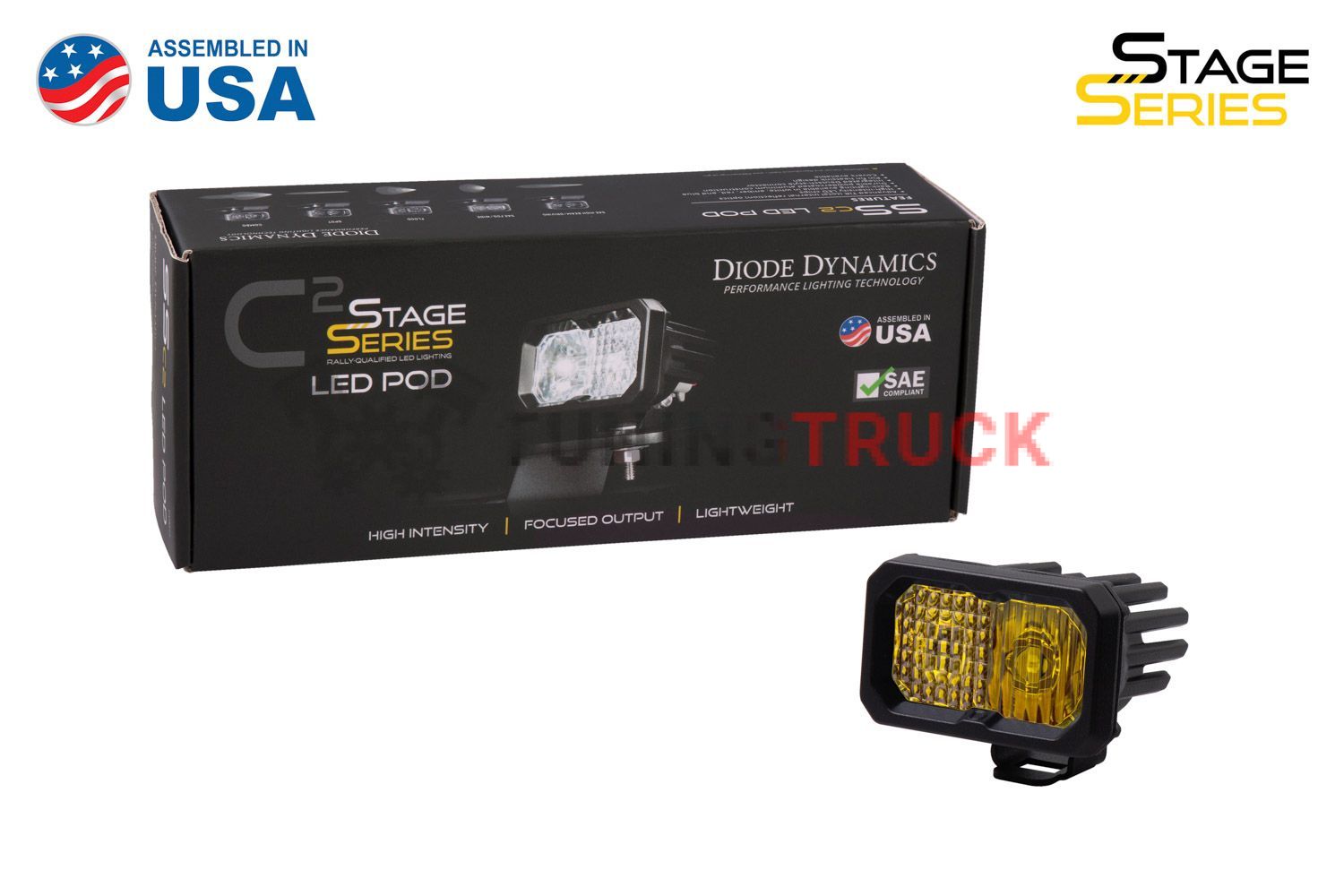 Желтый противотуманный LED-модуль серии SS2 Sport от Diode Dynamics. TIR-оптика, компактные размеры. Оснащен янтарной подсветкой и подключается за минуты.