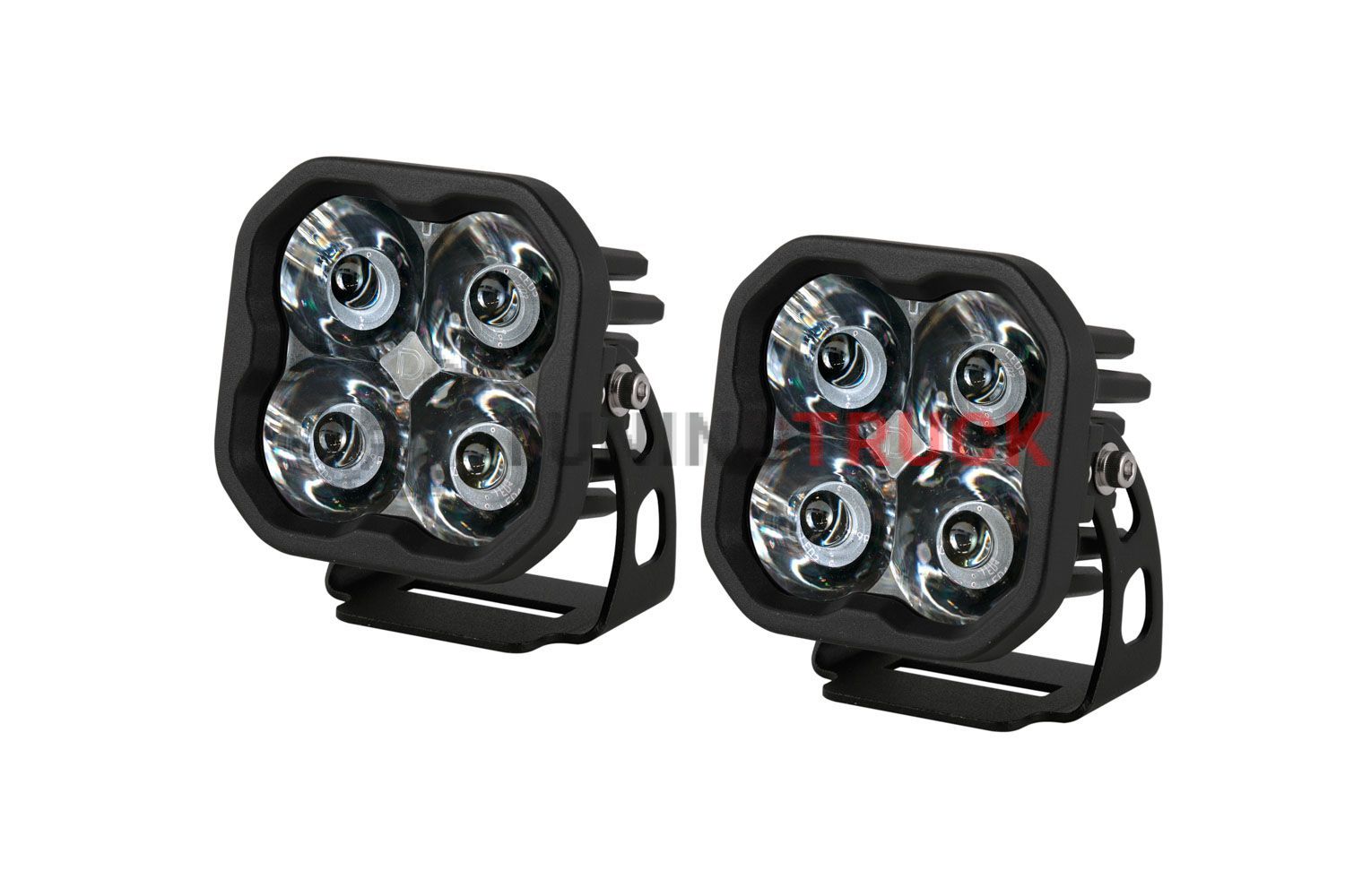 Комплект светодиодных фар SS3 Pro дальнего света с высокой интенсивностью излучения. TIR-оптика с полным внутренним отражением и белой поликарбонатной линзой особой конфигурации. Источник света - мощные светодиоды Luxeon Z ES. Красная подсветка.