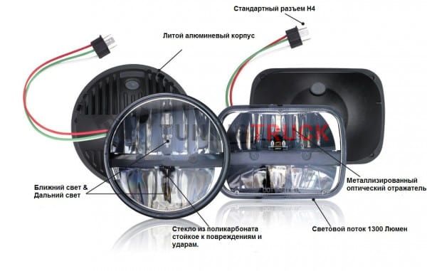 Стандартные 5х7 светодиодные фары от Truck-Lite & RIGID используют стандартный трехлопастной разъем H4 и устанавливаются на штатное место без переделок. -