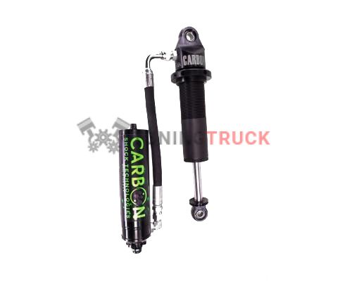 Койловер с выносной компенсационной камерой, оснащённой регулировочным клапаном. Высокое качество гарантирует длительную бесперебойную работу без утечек. Детали выполнены на станках с ЧПУ. Весь технологический процесс компания Carbon проводит на базе собственного производства.