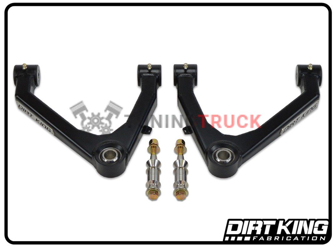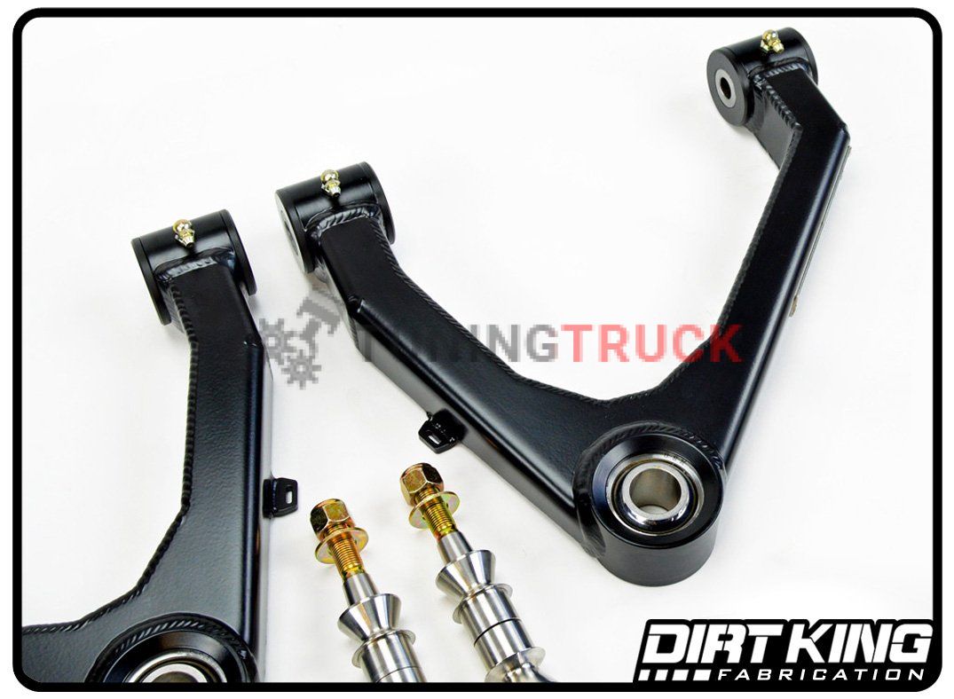 Чтобы поднять автомобиль, верхние рычаги должны быть синхронизированы с OEM амортизаторами. Предлагаемый комплект рычагов обеспечивает дополнительный ход вниз на 2” по сравнению со стандартными верхними рычагами управления и совместим с койловерами King, Fox, Bilstein, ADS и Icon. Не устанавливайте эти верхние рычаги с прокладками, которые должны быть установлены над шарнирной подвеской.