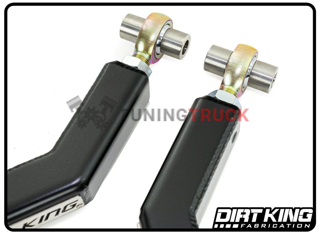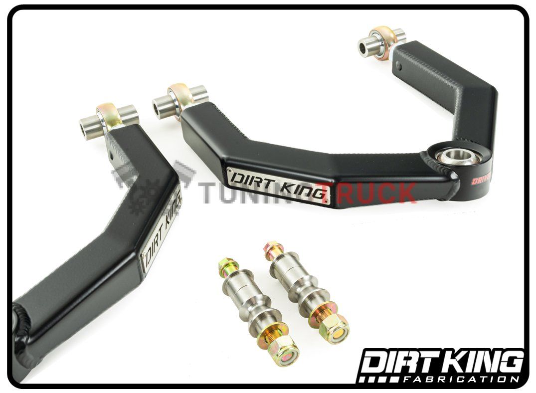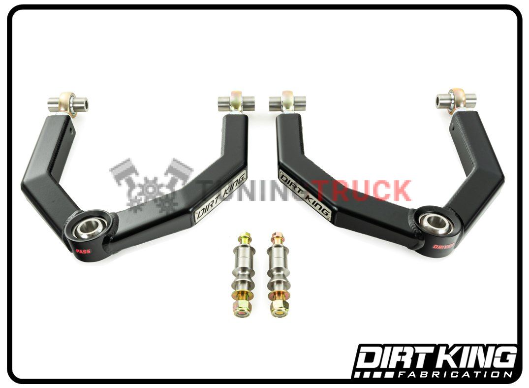 Чтобы поднять автомобиль, верхние рычаги должны быть синхронизированы с OEM амортизаторами. Предлагаемый комплект рычагов обеспечивает дополнительный ход вниз на 1” по сравнению со стандартными верхними рычагами управления и совместим с койловерами King, Fox, Bilstein, ADS и Icon. Не устанавливайте эти верхние рычаги с прокладками, которые должны быть установлены над шарнирным соединением подвески.