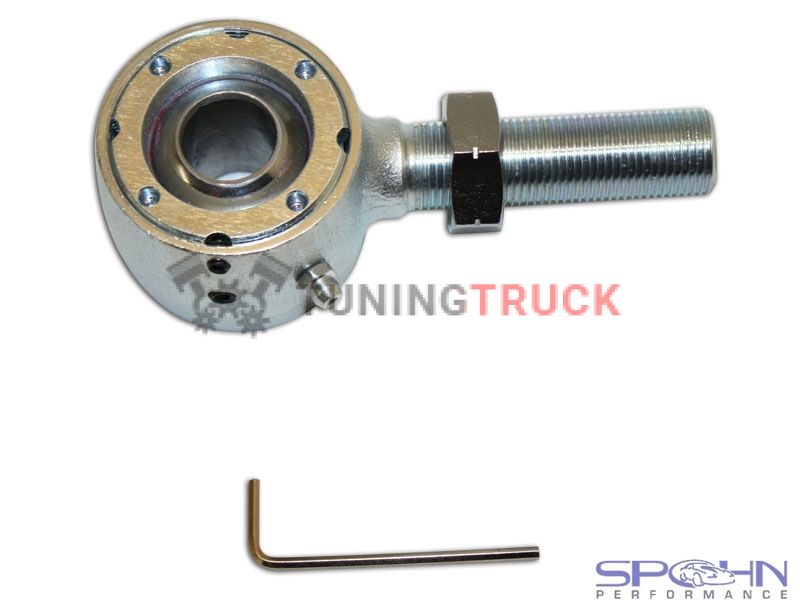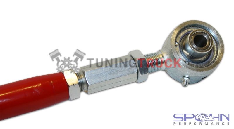 Эта комбинация позволяет рычагу шарнирно вращаться, как сферический конец штока (28 градусов возможного вращения) во время поворота, но сферический шар не позволяет втулке отклоняться. Поэтому во время поворота рука остается полностью свободной, как сферический конец тяги, для предсказуемого сцепления в поворотах. -