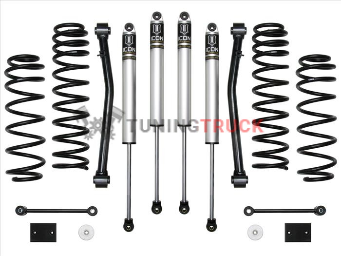 Система подвески ICON Vehicle Dynamics Stage 2 2,5" для Jeep Wrangler JL 2018-UP предназначена для водителей, стремящихся значительно улучшить характеристики и качество езды своего автомобиля. Специальные алюминиевые амортизаторы серии 2.0, передние нижние тяги из трубчатой стали, проставки для защиты от ударов, тяги стабилизатора поперечной устойчивости и все необходимое оборудование для завершения установки. С помощью этой комбинации компонентов ICON смогла увеличить ход колес более чем на 30% (3 дюйма спереди, 2 дюйма сзади), переопределив потенциал 2018-UP JL. Передние нижние тяги, включенные в эту систему, изготовлены из толстостенных стальных труб, имеют увеличенное число колес и оснащены двойными втулками по твердости для бесшумной работы, максимальной артикуляции и минимального заедания. Система Stage 2 позволяет устанавливать 35-дюймовые шины при использовании колес с рекомендованными ICON техническими характеристиками. Для пользователей, желающих установить 37-дюймовые шины, доступен дополнительный комплект проставок для защиты от ударов (номер по каталогу: 22029).