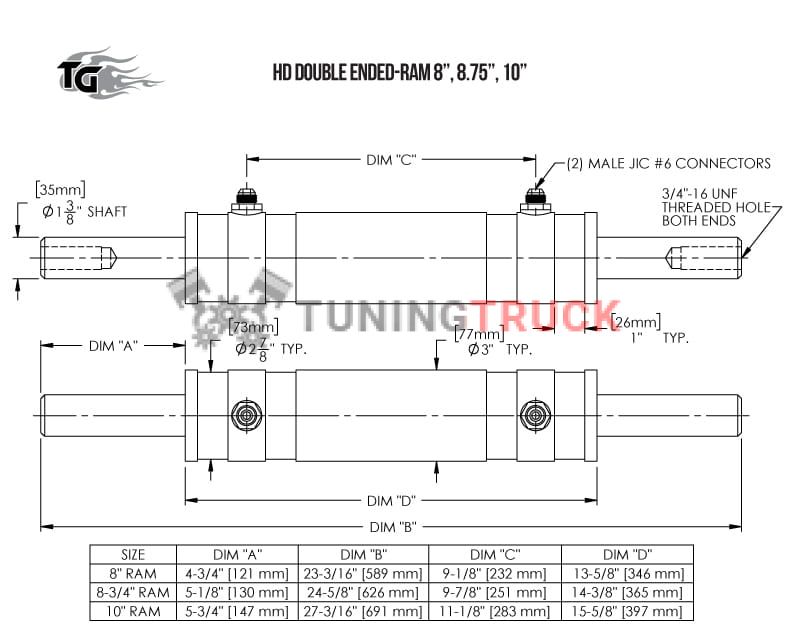 Rock Assault™ ДВУХСТОРОННИЙ ГИДРАВЛИЧЕСКИЙ ЦИЛИНДР ДИАМЕТР 2.5" , шток 1.375"