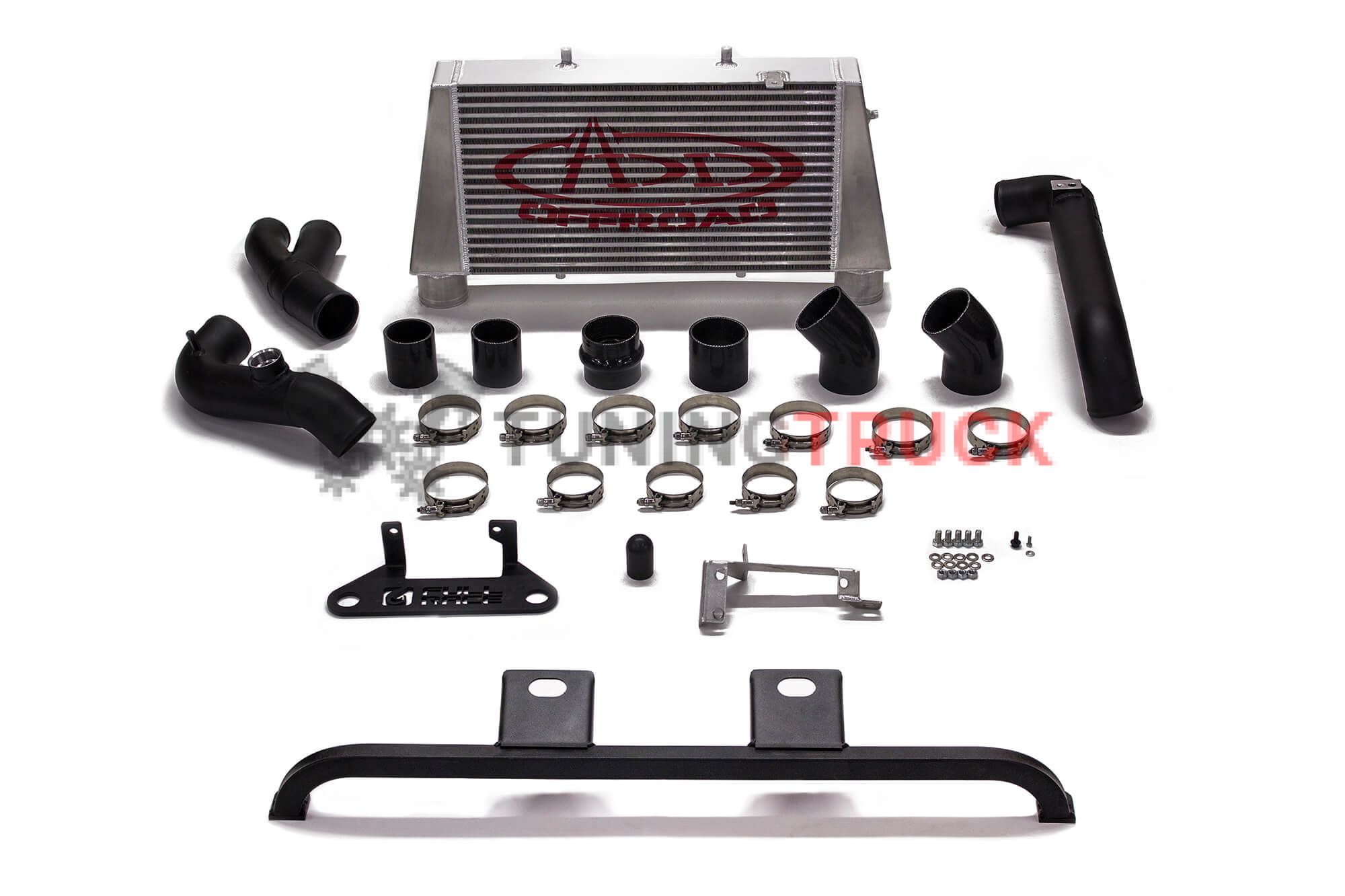 2017 Ford Raptor Intercooler relocation kit with intercooler in Satin Black. Not CARB compliant.