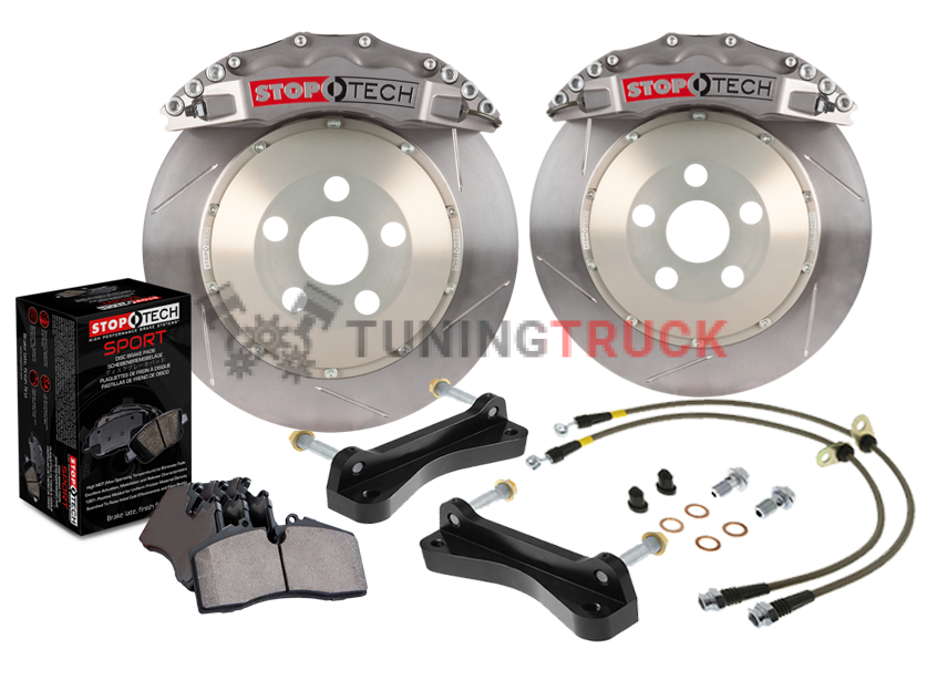 Характеристики StopTech 83.198.6D00.R1 Большой тормозной комплект с 6 поршнями STR Уличные суппорты и двухсекционные шлицевые роторы без покрытия, передние;