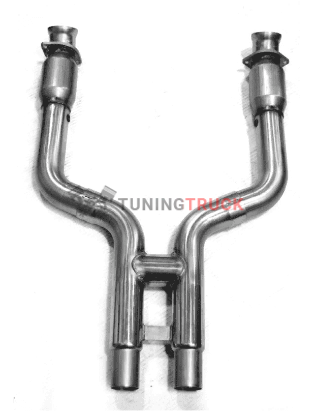 Приемная труба H-Pipe с ультра производительными катализаторами Green Cat. Используется с длиннотрубными коллекторами Kooks. Устанавливаются на автомобили Ford Mustang GT500. Используются в рамках тюнинга выхлопной системы, что повышает ее производительность и эффективность. Материал - нержавеющая сталь марки Т304.