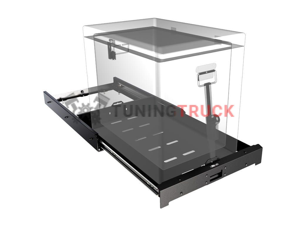 - Устанавливается на любую плоскую поверхность, включая системы выдвижных ящиков Front Runner и грузовой платформы пикапа.