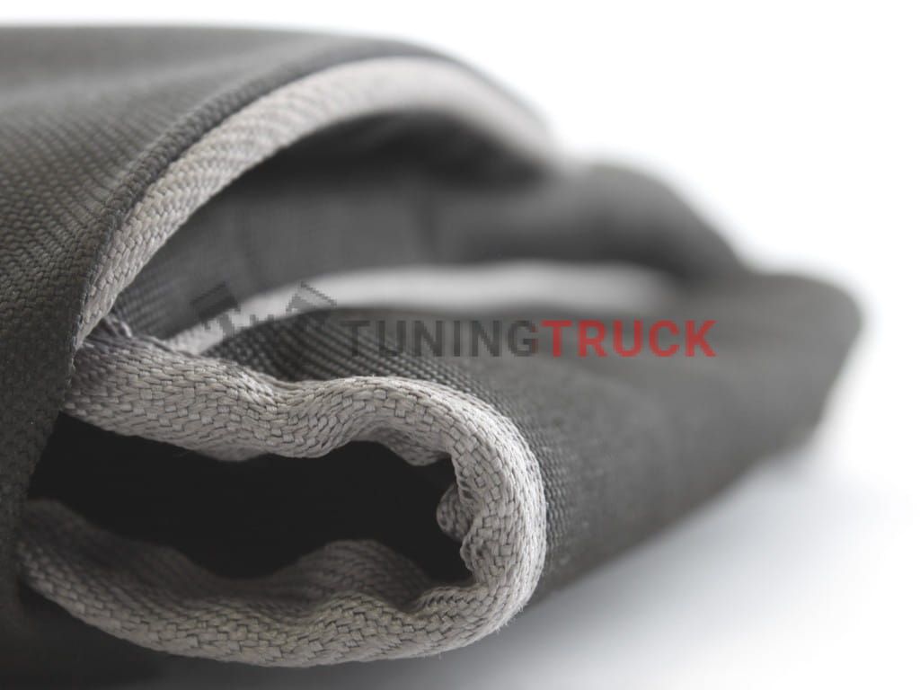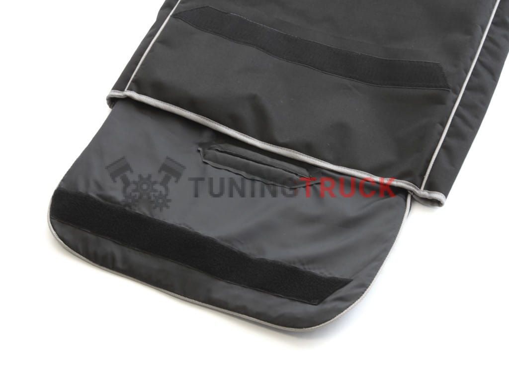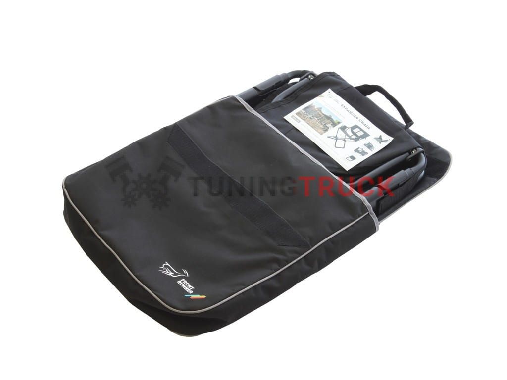 Черная сверхпрочная холщовая ткань с подкладкой и серой отделкой. Большой клапан на липучке защищает кресло от соприкосновения с другими предметами при хранении и перевозке. Отверстие в верхней части сумки позволяет использовать ручку стула для его переноски внутри сумки.